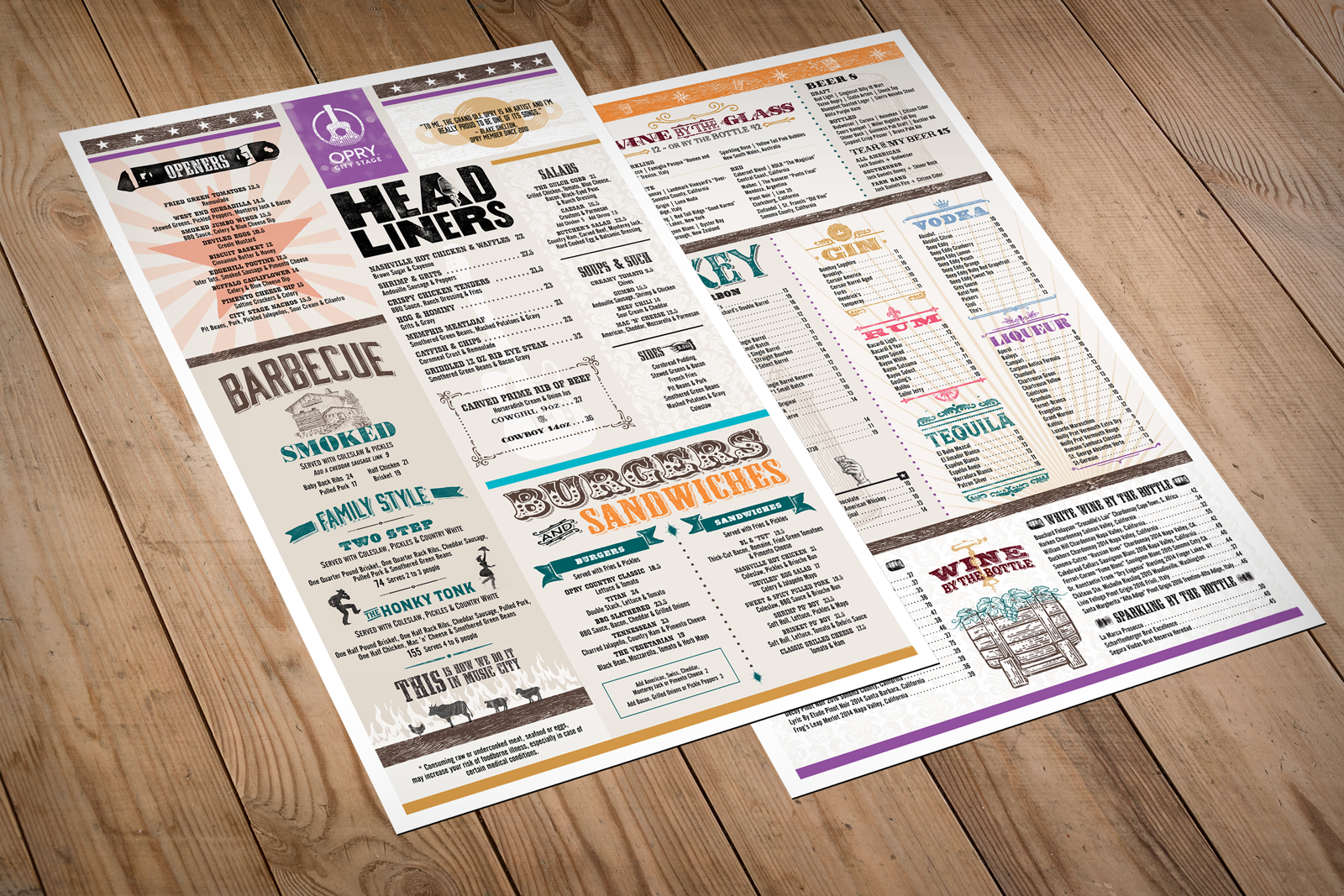 Menu Design for Opry City Stage NYC